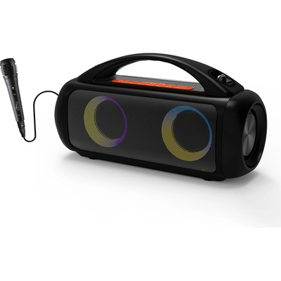 Horizontální stereo Bluetooth reproduktor s zvýrazněním basů, MP3 přehrávačem a funkcí KARAOKE.