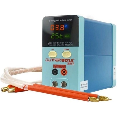 GLITTER 801A+ je kondenzátorová bodová svářečka pro bodové svařování akumulátorů do bateriových akupacků pomocí niklových plíšků. Oproti klasickým svářečkám s transformátorem nabízí nižší hmotnost i rozměry a větší energii pulsu. Svářečka umožňuje i svařování niklových...