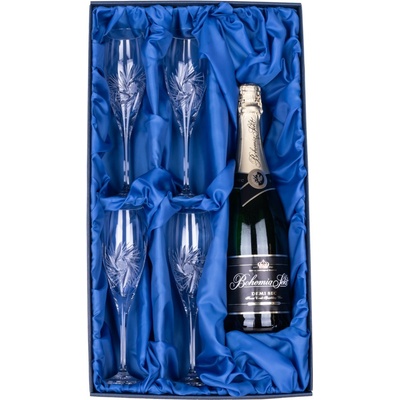 CRYSTAL Bohemia ONTE Sekt Demi Sec se skleničkami Větrník Sampus broušené skleničky 4 x 150 ml