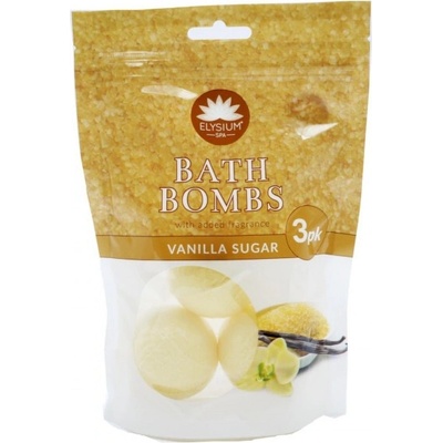 Elysium Spa bomby do koupele VANILLA SUGAR 3x50g \nLuxusní šumivé koupelové bomby s hřejivou, sladkou a krémovou vůní vanilky a cukru. Každá bomba (3 x 50 g) se ve vlažné vodě...
