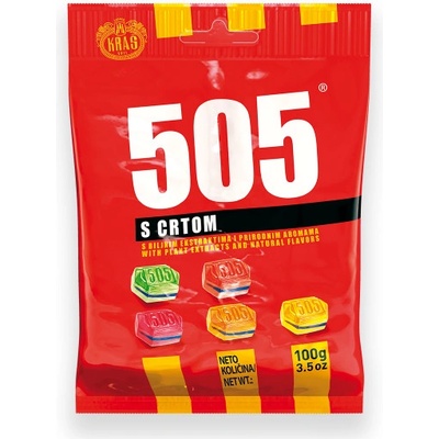 Kraš 505 bonbony 100 g jsou ikonické ovocné bonbony z Chorvatska, známé svou intenzivní chutí a přírodními barvami získanými z ovoce a zeleniny. Složení: Cukr, glukózový...