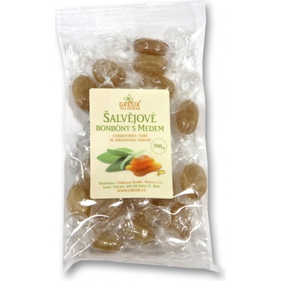 Šalvějové bonbóny s medem 100 g - Valdemar Grešík Jemná šalvějová chuť v kombinaci s medem. Bonbóny jsou vyrobené z přírodního extraktu ze šalvěje a včelího medu. Složení:...