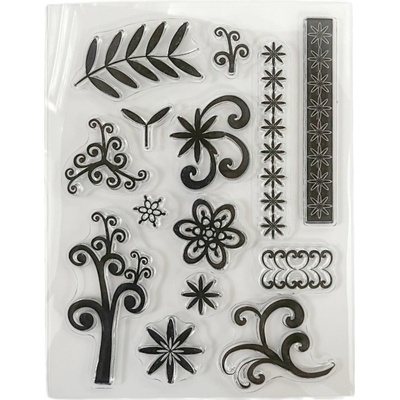 Rozměry razítek od 2x2cm do 1,4x9,5cm (š x v). Motivy razítek - bordury, bordura, větvičky, větvička, květiny, strom a ornamenty. POUŽITÍ Razítko je vhodné na razítkování...