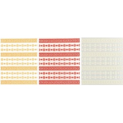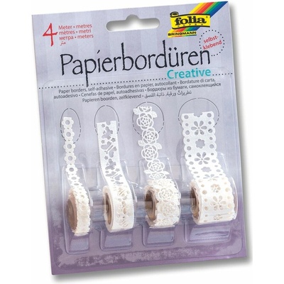 Samolepící bordury jsou vyrobeny z papíru. Jsou vhodné k dekoračním a kreativním účelům, také např. pro scrapbooking... Balení obsahuje: 4 druhy - každá rolička je dlouhá 1 m...