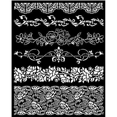 Plastová šablona pro kreativní tvorbu od italské firmy Stamperia s motivem květinových bordur o rozměrech 18 x 18 cm. Používáme se strukturovacími pastami, sametovými pastami,...