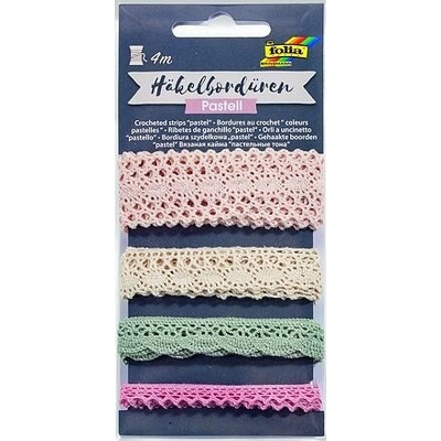 Sada obsahuje 4 krajkové stuhy (bordury). Stuhy jsou v šířkách 3cm, 1,7cm, 1,2cm a 0,7cm. Délka každé stuhy 1m. Materiál 100% bavlna. Vhodné na papírové tvoření, dekorace,...