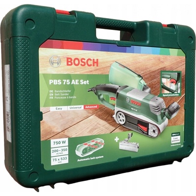 Bosch PBS 75 A – pásová bruska Zařízení jsou k dispozici ihned – realizujeme je okamžitě Nový, originální produkt s nářečím. Bosch (3 roky po registraci). Objednávky zaplacené do 12:00 hodin realizujeme ve stejný den. Bosch PBS 75 AE je pásová bruska o výkonu 750 W,...