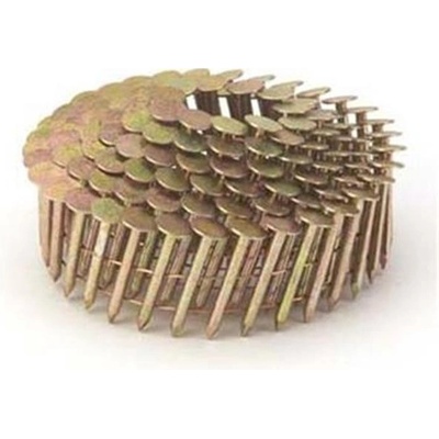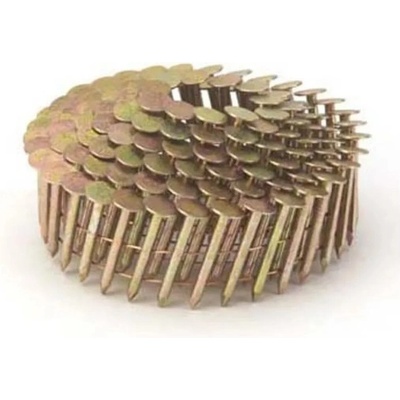 Lepeňáky 3,1 x 19 konvex ZINEK 13µ Balení 7200 ks Úhel páskování 16° ocelové + 13µ žlutý zinek Hřebíky LEPEŇÁKY páskované na drátěnném svitku 1 svitek = cca 120 ks lepeňáků Použití v pneumatických hřebíkovačkách Použití pro přibíjení lepenky, asfaltových šindelů...