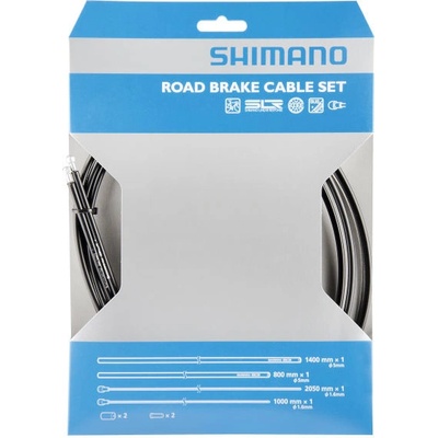 Set Shimano - brzdová silniční lanka + bowdeny - lanka: 1x1000mm, 1x2050mm - bowden: 1x800mm; 1x 1400mm - koncovka bowdenu 2x, koncovka lanka 2x barva: černá Original...