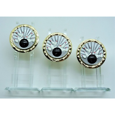 K9-FG006. Skleněné sloupkové trofeje osazené keramickým emblémem o průměru 7 cm (viz.další foto) - výška trofejí je uvedena za lomítkem katalogového čísla. Objednávátei 1 sadu...