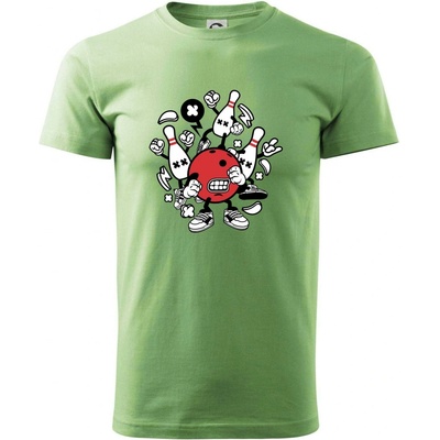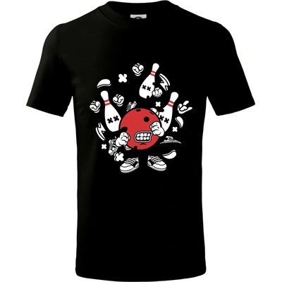 Triko pro hráče bowlingu, na kterém je bowlingová koule a kuželky. Bowlingové triko by měl mít každý bowlingový hráč. S bowlingovým trikem to bude samý strike, žádná kuželka...