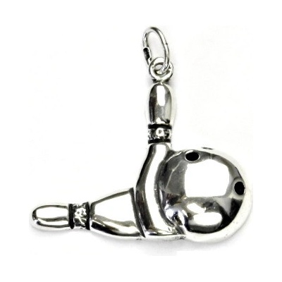 Stříbrný přívěsek s patinou - koule a kuželky - bowling. Materiál je stříbro 925/1000. Rozměr přívěsku je 24 mm včetně očka na výšku a 24 mm na šířku. Orientační váha přívěsku...