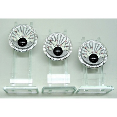 K8-FG006. Skleněné sloupkové trofeje osazené keramickým emblémem o průměru 7 cm (viz.další foto) - výška trofejí je uvedena za lomítkem katalogového čísla. Objednáváte l sadu...