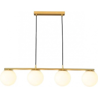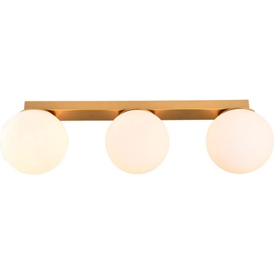 Stropné interiérové svietidlo, kovová konštrukcia lakovaná matnou zlatou, difúzory z fúkaného skla opálovo biele.