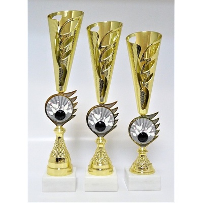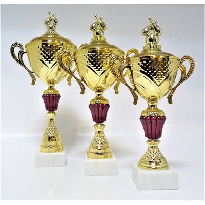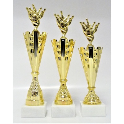 X53-P417.01. Plastové poháry na mramorovém podstavci. Velikost pohárů včetně figurky je uvedena za lomítkem katalogového čísla. Při nákupu celé sady (43/40/37cm), text na štítky...
