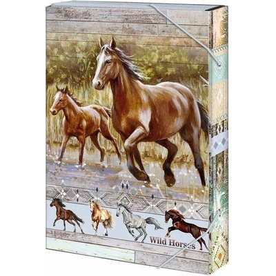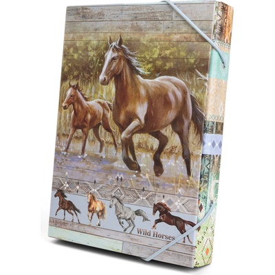 Školní box velikosti A5 Wild horses na sešity a jiné dokumenty. br• je z tvrdého papírového materiálu uzavřen ze všech stran s PUV lakováním a vnitřním potiskem br• má gumičky v...