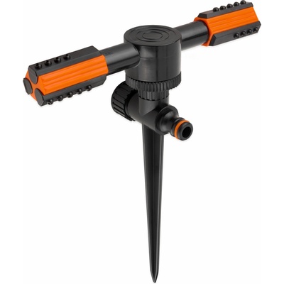 Plastový rotační 2 ramenný zavlažovač umožňuje rovnoměrnou zavlahu do maximálního průměru 13 m. Postřikovač osazen univerzální koncovku hadice, která umožňuje sériové propojení s jinými postřikovači. Každé rameno lze nastavit do 3 poloh. Maximální délka postřiku je 13...