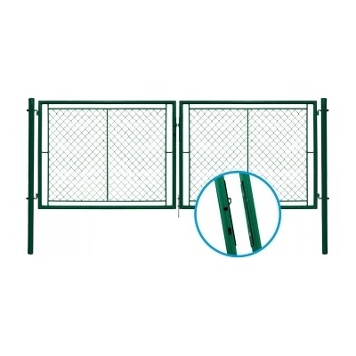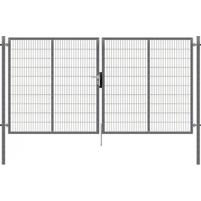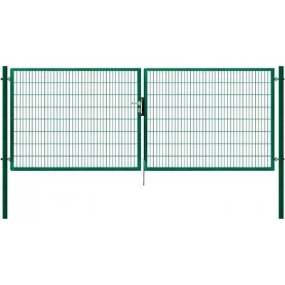 Plotová brána dvoukřídlá IDEAL II výplň čtyřhranné pletivo - 3037 (šířka na střed sloupků) x 1750 mm s kovovými oky pro visací zámek Pilecký. Dvoukřídlá zahradní brána IDEAL...