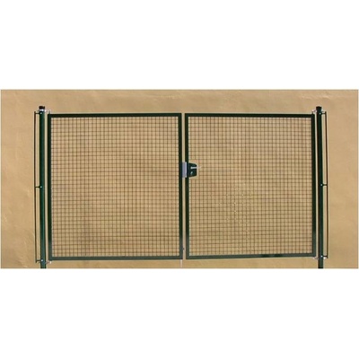 Klasická dvoukřídlá brána poplastovaná. Zelená. Šíře 3150 mm. Výška 1500 mm. Součást brány: 2x sloupek d=60 mm 2x klobouček 2x držák pletiva 1x zámek seřiditelný 1x doraz zámku...