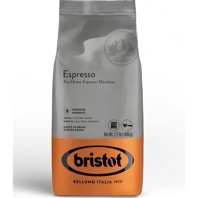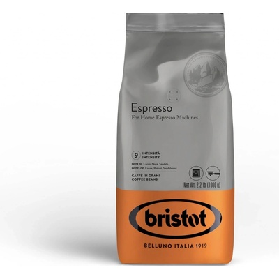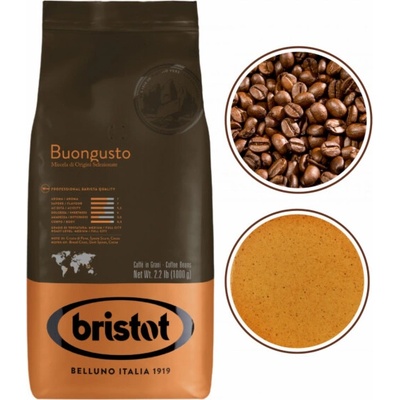 Zrnková káva Bristot Espresso je směsí káv Robusta z Indie a Arabika z brazilských plantáží. Chuť kávy Bristot Espresso je proto pestrá, a silná. Střední severoitalské pražení zaručuje, že tato zrnková káva má charakteristickou hustou pěnu.
