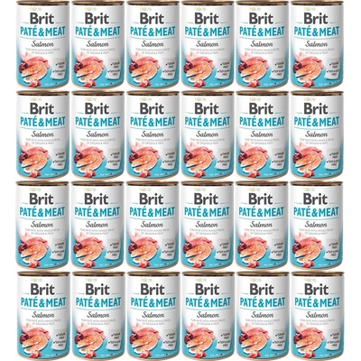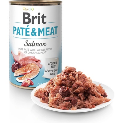 Konzerva BRIT Paté & Meat Salmon 400g Krmivo pro psy - konzerva Specifikace produktu - kvalitní konzerva pro psy všech plemen - čistě masové paté s kousky masa a vnitřností - receptura s lososem a kuřetem - skvělá chuť, vůně a stravitelnost - přírodní obsah...