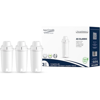 Náhradní patrony vhodné do konvic Brita použivající filtr Brita Classic. Klíčové vlastnosti filtrační patrony Aqua Crystlalis AC-CLASSICOdstraňuje z vody vodní kámen, těžké...