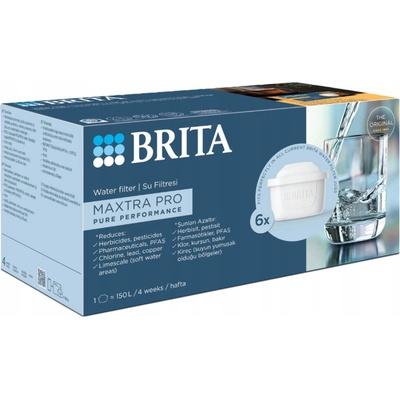 BRITA Maxtra PRO Pure Performance, Vodní filtry 6 ks Náhradní filtry na vodu do filtrační konvice. Zajišťuje výraznou redukci vodního kamene. Kompatibilní se všemi konvicemi Brita (včetně starších).