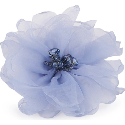 Romantická textilní brož květu z organzy má bohaté okvětní plátky, je jemně nadýchaná. Ve středu je ozdobená broušenými korálky, díky kterým se nádherně třpytí. Vzadu má brožový...