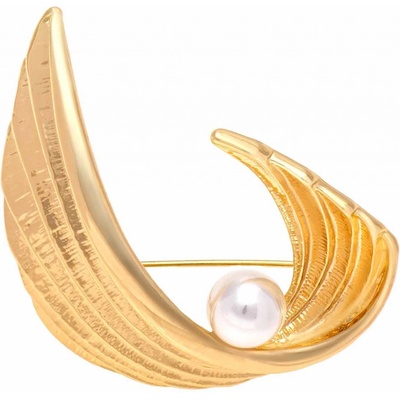Tato elegantní brož ve tvaru stylizovaného křídla v lesklém zlatém provedení zaujme svým ladným tvarem a jemnou perličkou uprostřed. Symbol ochrany a elegance je skvělým...