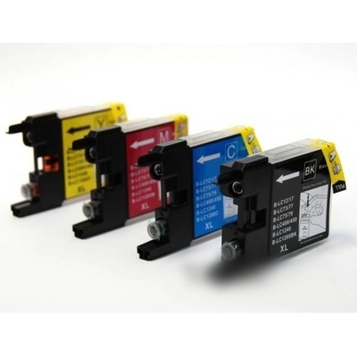 Kompatibilní černá + 3x barvy cartridge Brother LC-1240, Brother LC-1280, sada všech barev XL. Obsahuje 28.5 ml, 3x 18,5 ml.