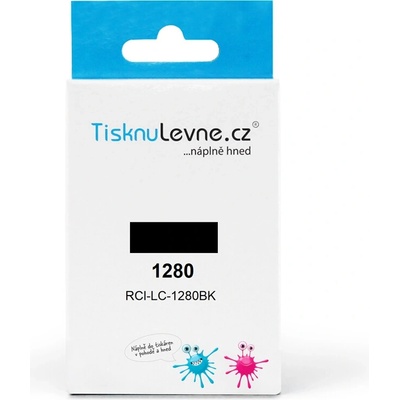 Černý zásobník TisknuLevne.cz (kompatibilní s Brother č.1280 - LC-1280XLBK). Obsahuje 30 ml. Vytiskne cca 2400 stran A4 při pokrytí 5%