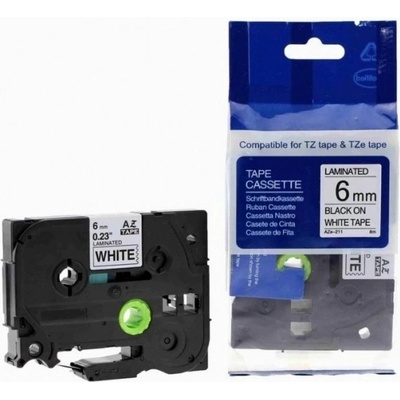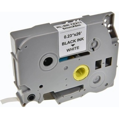 PrintLine Brother kompatibilní páska s TZE-211, TZ-211, 6mm, černý tisk/bílý podklad - PLTB02