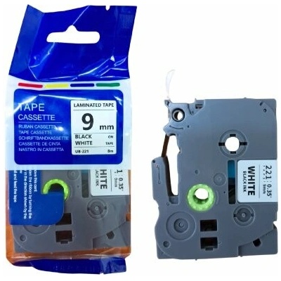 kompatibilní páska s Brother TZE-221, TZ-221, 9mm, černý tisk/bílý podklad