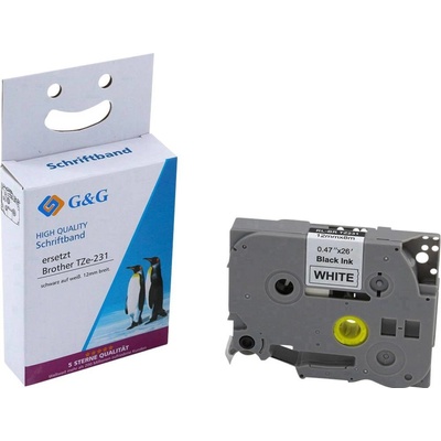 PrintLine Brother kompatibilní páska s TZE-231, TZ-231, 12mm, černý tisk/bílý podklad - PLTB04