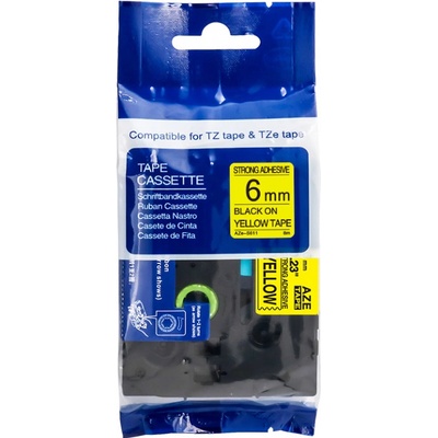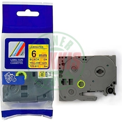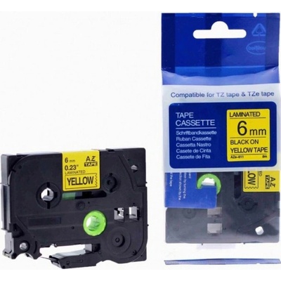 PrintLine Brother kompatibilní páska s TZE-611, TZ-611, 6mm, černý tisk/žlutý podklad - PLTB11