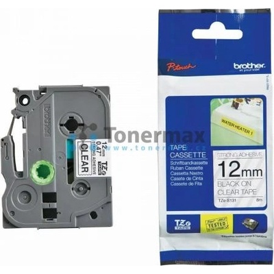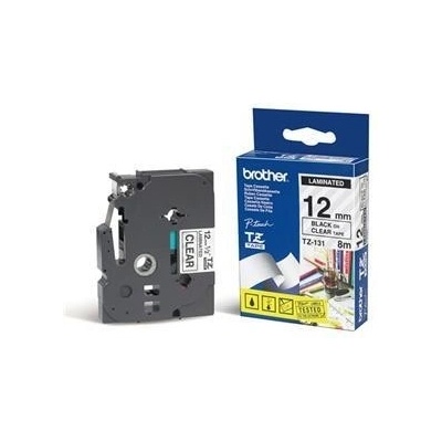 Originální páska Brother TZe-131, 12 mm, laminovaná průhledná páska / černý tisk, výtěžnost 8 m. Pro tiskárny Brother P-touch 18R, PT-18R, P-touch 300, PT-300, P-touch 550, PT-550, P-touch 900, PT-900, P-touch 1000, PT-1000, P-touch 1010, PT-1010, P-touch 1080,...