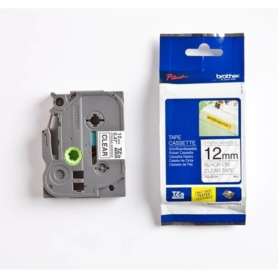 Originální páska Brother TZe-S131, 12 mm, extrémně adhezivní laminovaná průhledná páska / černý tisk, výtěžnost 8 m. Pro tiskárny Brother P-touch 18R, PT-18R, P-touch 300,...