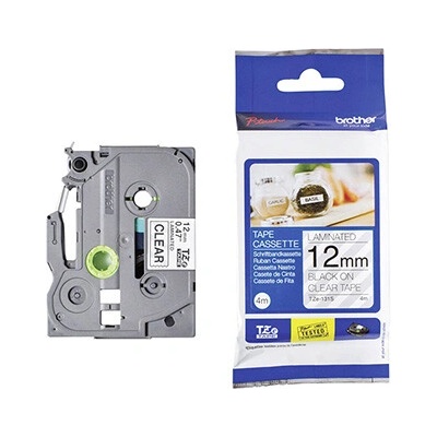 Originální kazeta s páskou Brother TZe-131 - černý tisk na průsvitné, šířka 12 mmOriginální kazeta s laminovanou páskou TZe-131 kompatibilní s širokou řadou tiskáren Brother P-touch je zvláště všestranná díky své snadno čitelné černé barvě na průsvitním podkladu -...