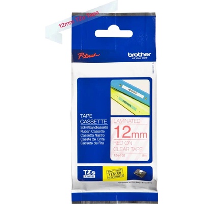 Brother TZe-132 - Červená na průsvitné - Role (1,2 cm x 8 m) 1 kazeta/y lamino páska - pro Brother PT-D210, D600, H110, P750, P950; P-Touch Cube PT-P300; P-Touch Cube Pro PT-P910