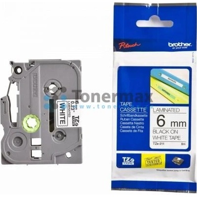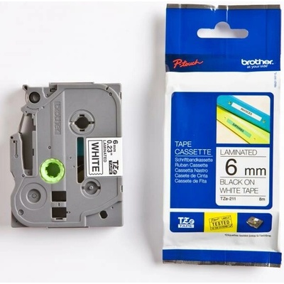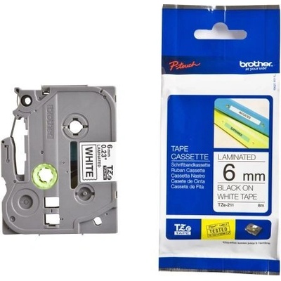 Brother originální páska do tiskárny štítků, Brother, TZE-211, černý tisk/bílý podklad, laminovaná, 8m, 6mm