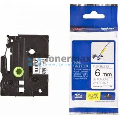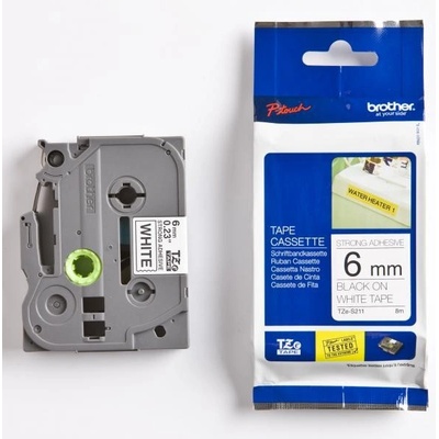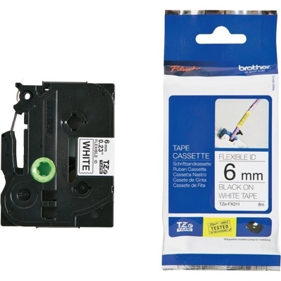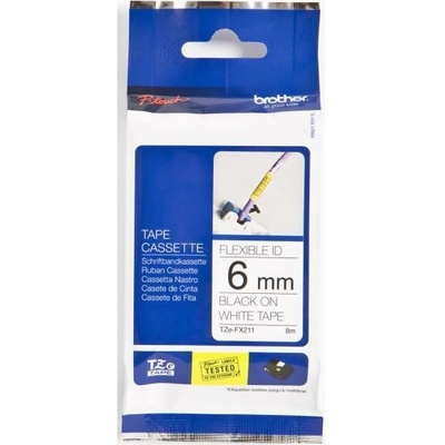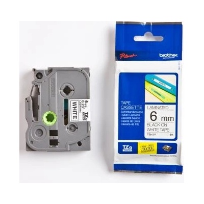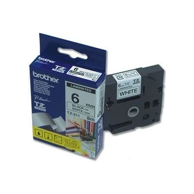 Páska Brother originální páska do tiskárny štítků, Brother, TZE-211, černý tisk/bílý podklad, laminovaná, 8m, 6mm, značky Brother. Barva je černá.
