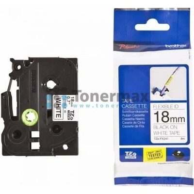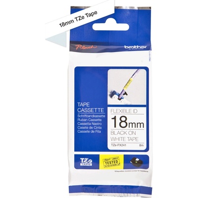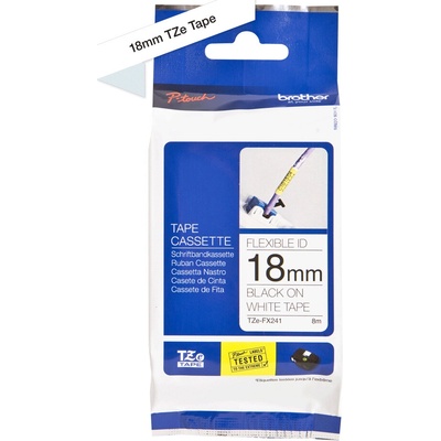Originální páska Brother TZe-FX241, 18 mm, flexibilní bílá páska / černý tisk, výtěžnost 8 m. Pro tiskárny Brother P-touch 18R, PT-18R, P-touch 300, PT-300, P-touch 550,...