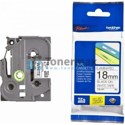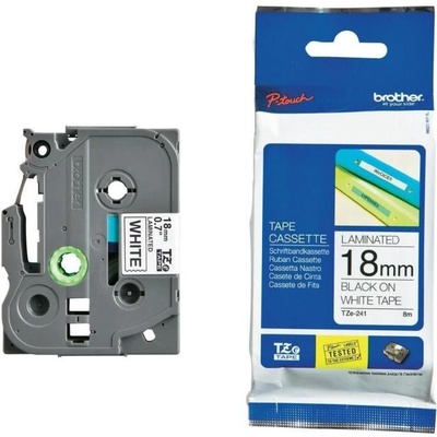 Originální páska Brother TZe-241, 18 mm, laminovaná bílá páska / černý tisk, výtěžnost 8 m. Pro tiskárny Brother P-touch 18R, PT-18R, P-touch 300, PT-300, P-touch 550, PT-550,...