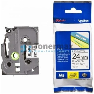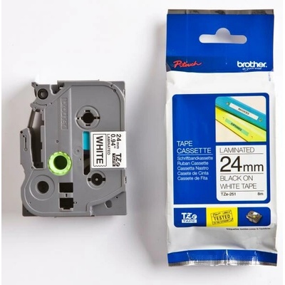 Originální páska Brother TZe-251, 24 mm, laminovaná bílá páska / černý tisk, výtěžnost 8 m . Pro tiskárny Brother P-touch 550, PT-550, P-touch 2420PC, PT-2420PC, P-touch...