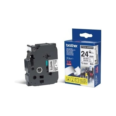 Originální páska Brother TZe-S251, 24 mm, extrémně adhezivní laminovaná bílá páska / černý tisk, výtěžnost 8 m. Pro tiskárny Brother P-touch 550, PT-550, P-touch 2420PC,...