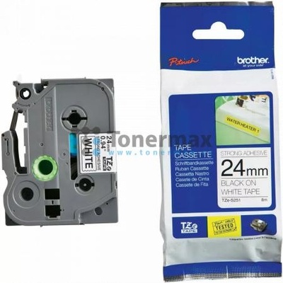 Páska Brother originální páska do tiskárny štítků, Brother, TZE-S251, černý tisk/bílý podklad, laminovaná, 8m, 24mm, extrémně adhezivní, značky Brother. Barva je černá.