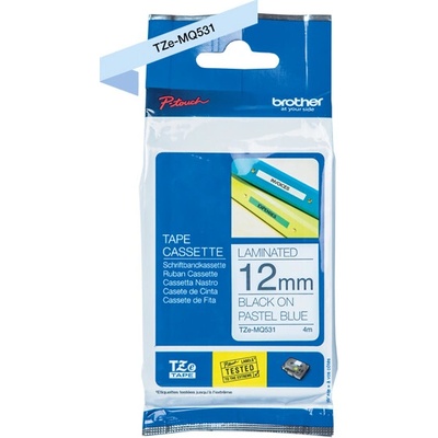 Originální páska Brother TZe-MQ531, 12mm, laminovaná pastelově modrá páska / černý tisk, výtěžnost 4 m. Pro tiskárny Brother P-touch 18R, PT-18R, P-touch 300, PT-300, P-touch 550, PT-550, P-touch 900, PT-900, P-touch 1000, PT-1000, P-touch 1010, PT-1010, P-touch 1080,...