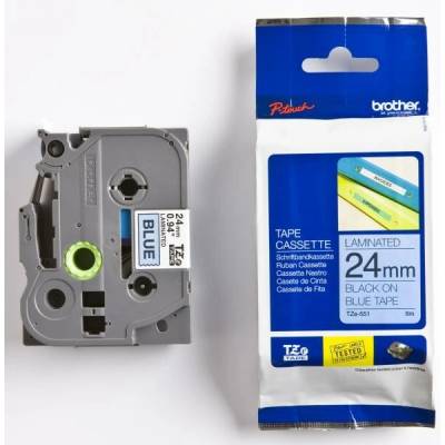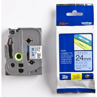Páska Brother TZ, 24mm (TZ-551) modrá, černý tisk, laminovaná, 8m (TZe-551) Standardní Brother TZ pásky pro tisk odolných štítků. Štítky jsou velice odolné, vhodné na jakékoliv použití i do venkovního prostředí. Délka pásky v...