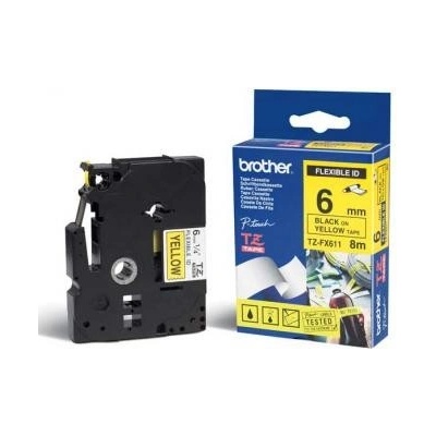 Brother originální páska do tiskárny štítků, Brother, TZE-FX611, černý tisk/žlutý podklad, laminovaná, 8m, 6mm, flexibil