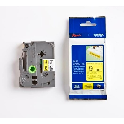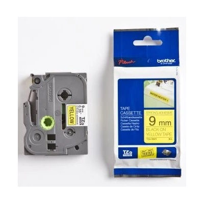 Originální páska Brother TZe-S621, 9 mm, extrémně adhezivní laminovaná žlutá páska / černý tisk, výtěžnost 8 m. Pro tiskárny Brother P-touch 18R, PT-18R, P-touch 300, PT-300,...